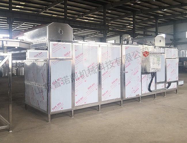 连续多层烘干机是利用不锈钢编织网带作为传输带运载物料进行连续烘干的干燥设备,适宜流水作业。每一个通道有一个或几个排湿系统,在输送带通过时,热空气从上往下或从下往上通过输送带上的物料,从而使物料能均匀干燥。由于传输带是网状,所以对烘干规则或不规则各种块状物(如:蒜片、薯条、蒲公英、苹果片、药材、食品、蔬菜等)很适宜。本机可以和其他设备配套使用。也可以单独使用。